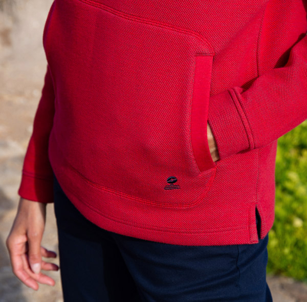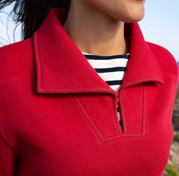 On adore ajouter une touche d'inspiration marine à nos créations ! Le col de ce sweat chaud femme est repris des traditionnelles vareuses bretonnes au col V boutonné, permettant de faciliter l'enfilage.