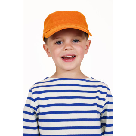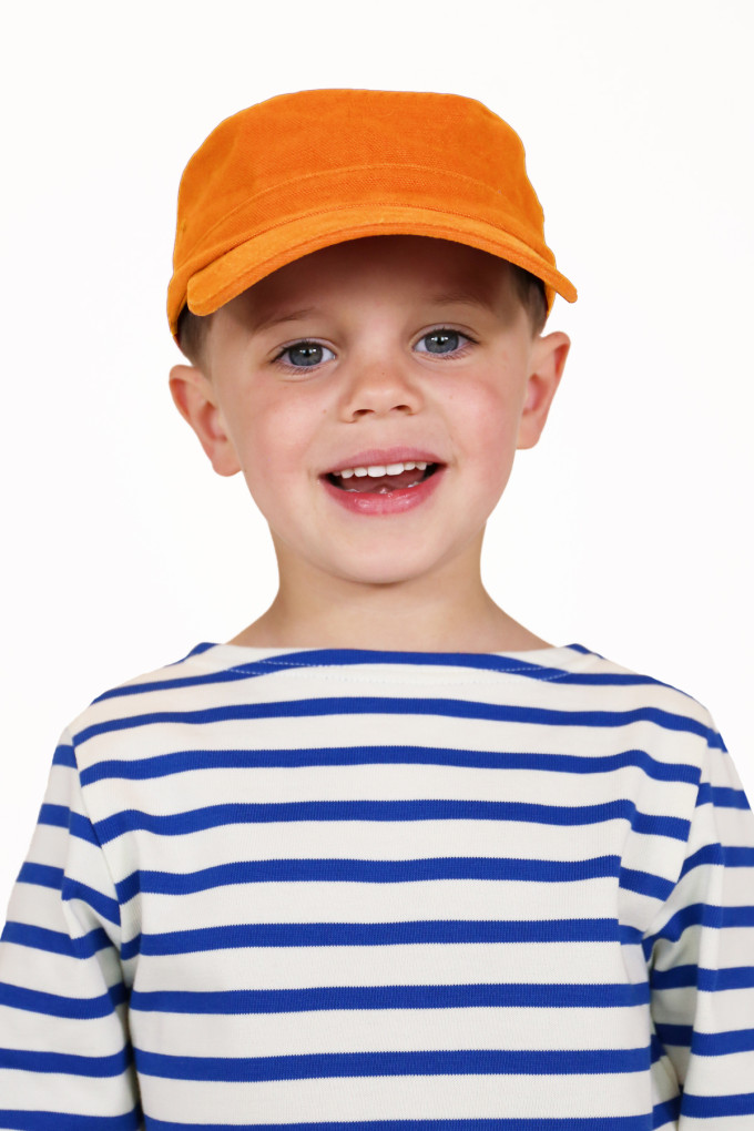 Envie de compléter le look moussaillon de votre enfant ? Optez pour cette casquette de marin en toile de coton ! Ajustable grâce à sa patte en velcro, elle convient à toutes les têtes. Associez cette casquette en toile à une vareuse pour un style marin authentique !