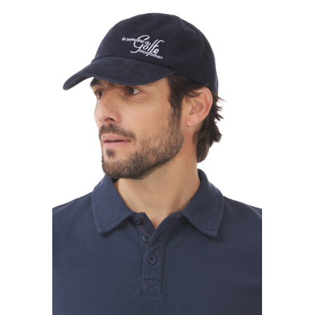 Protégez-vous du soleil breton avec cette casquette baseball brodée Semaine du Golfe ! Sa toile de coton délavée apporte un look marin à votre tenue, et sa patte de réglage vous offre un confort optimal. Voilà un joli souvenir aux couleurs de ce grand rassemblement de vieilles voiles.
