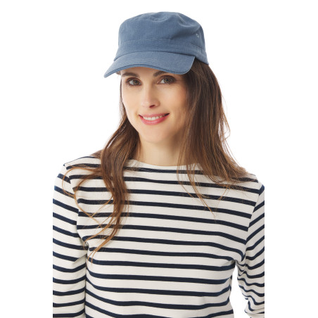 Complétez votre look d'aventurier des mers avec cette casquette de marin ! L'accessoire incontournable de l'été se décline chaque saison dans une panoplie de couleurs légèrement blanchies, iconiques du vestiaire marin. Sa toile de coton, durable et résistante, s'apparente à la matière des traditionnelles vareuses.