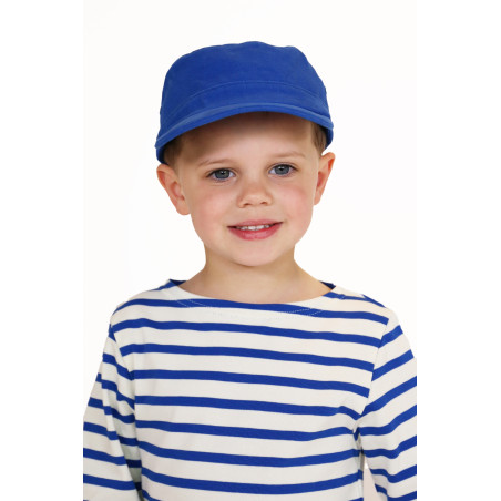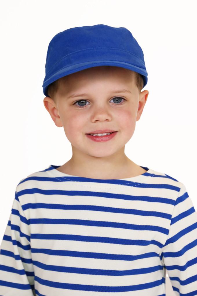 Envie de compléter le look moussaillon de votre enfant ? Optez pour cette casquette de marin en toile de coton ! Ajustable grâce à sa patte en velcro, elle convient à toutes les têtes. Associez cette casquette en toile à une vareuse pour un style marin authentique !