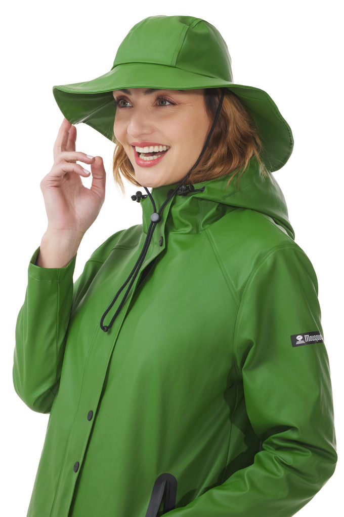 Adapté à toutes les têtes, ce chapeau imperméable est équipé d'un cordon de réglage. Ce cordon permet au chapeau de rester en place en cas de vent. Vous pouvez l'ajuster avec précision grâce à son stoppeur.