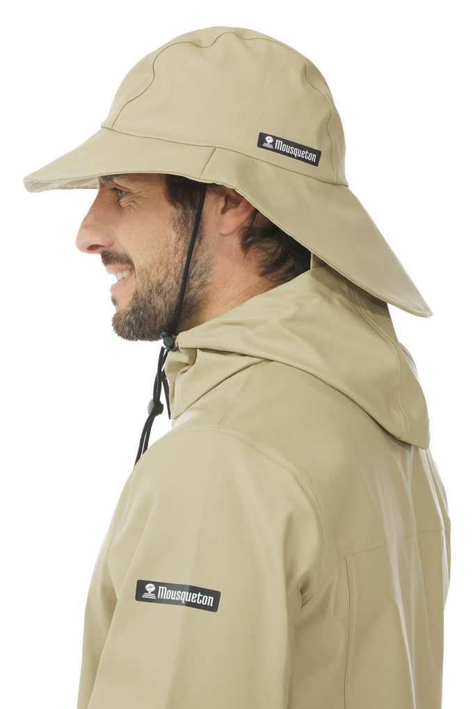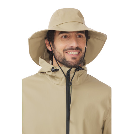 Adapté à toutes les têtes, ce chapeau imperméable est équipé d'un cordon de réglage. Ce cordon permet au chapeau de rester en place en cas de vent. Vous pouvez l'ajuster avec précision grâce à son stoppeur.