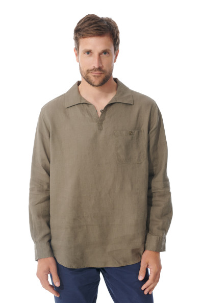 Voilà un modèle de chemise pensé pour conjuguer aisance et style, idéal pour la saison estivale. Grâce à sa matière en ramie similaire au lin, cette chemise est légère, respirante et agréable. Cette chemise homme est munie d'un col esprit vareuse, d'une coupe ample et de manches faciles à retrousser. À associer avec un pantalon chino pour un style casual chic !