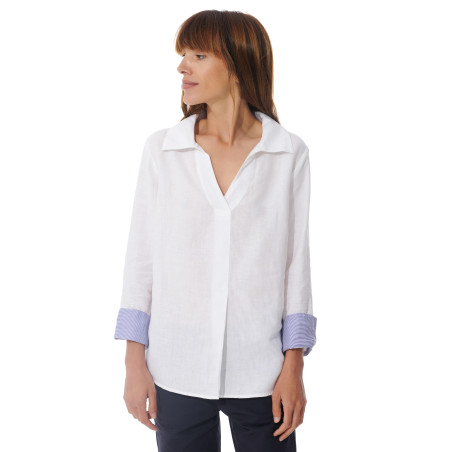 Craquez pour la coupe à la fois féminine et décontractée de cette blouse femme à col V ! Mention spéciale pour sa composition naturelle en coton et ramie, qui rappelle le lin. Résistante et respirante, cette blouse femme plaît aussi bien au printemps qu'au cœur de l'été.