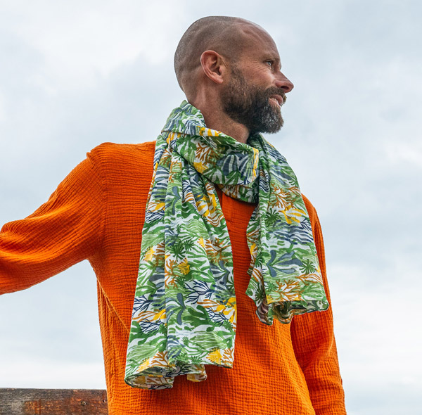 Accessoire de mode à part entière, le foulard viendra ajouter une petite touche colorée à votre tenue. Vous apprécierez son toucher souple 100% coton et ses coloris tie & dye déclinés de la palette de couleurs Mousqueton.