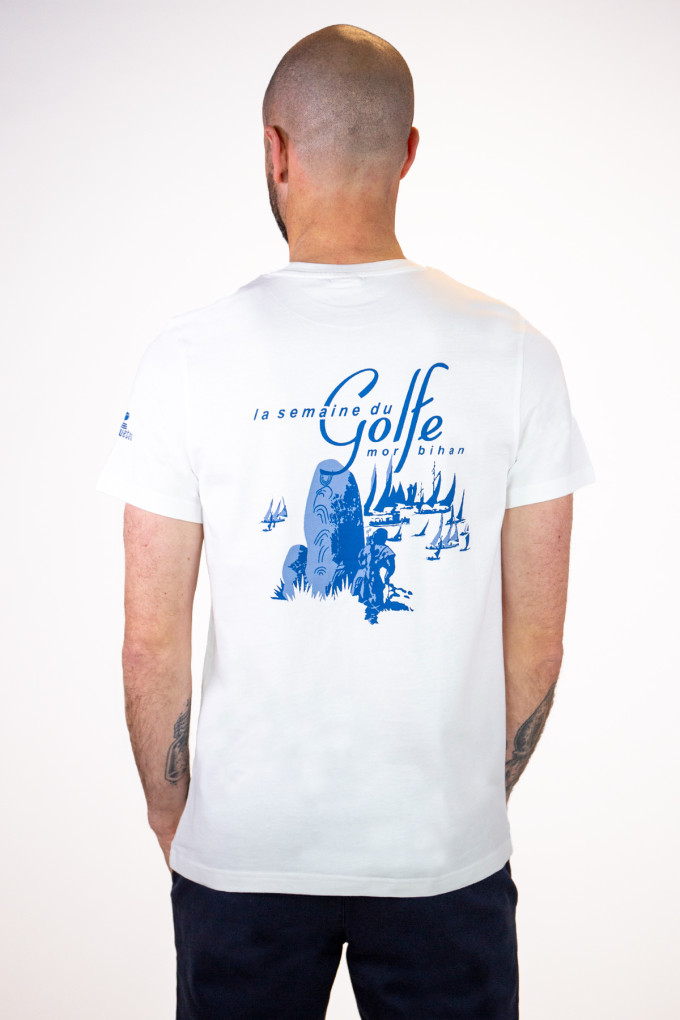 Profitez de la 13ème édition de la Semaine du Golfe avec ce t-shirt officiel ! En tant que fournisseur officiel, Mousqueton vous propose ce t-shirt en coton bio, doux et respirant. Retrouvez l'affiche de cette édition 2025 imprimée au dos du t-shirt, basée sur la peinture réalisée par Gildas Flahault.