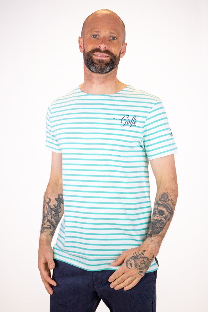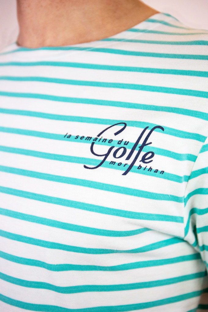 Portez fièrement les couleurs de la Semaine du Golfe avec ce t-shirt rayé à manches courtes ! Ce t-shirt officiel aux couleurs Mousqueton arbore le logo de la Semaine du Golfe à l'avant. Doux et léger grâce à son jersey de coton biologique, il vous accompagne lors des festivités pour un look marin assumé.