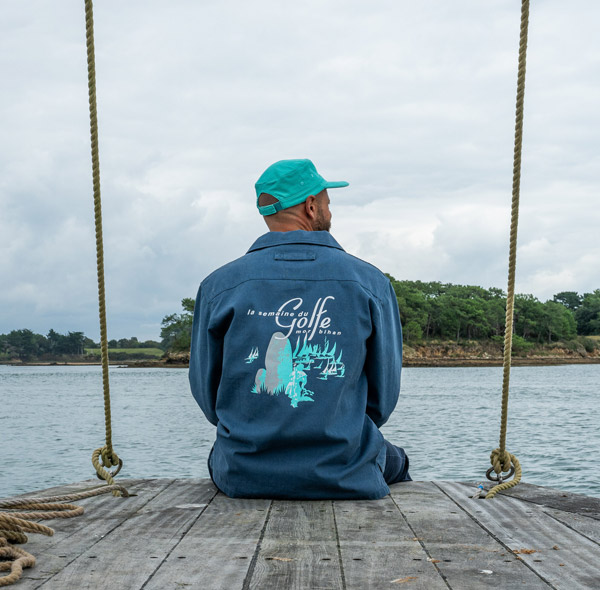 Célébrez la Semaine du Golfe avec cette vareuse spéciale 13ème édition ! L'illustration sérigraphiée au dos est directement reprise de l'affiche 2025 de la Semaine du Golfe, peinte par l'artiste Gildas Flahault.