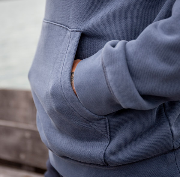 Ce sweat Semaine du Golfe est complété de broderies Mousqueton sur la poitrine et les cordons de serrage. Elles apportent une touche de couleurs subtile qui rappelle celle de la sérigraphie.