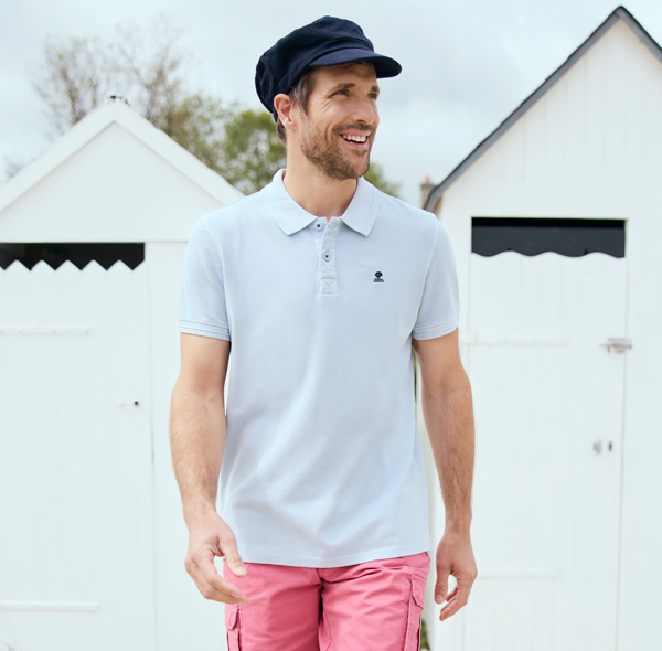 L'indispensable du dressing masculin : le polo homme à manches courtes. Vous apprécierez son coton bio piqué qui apporte un joli relief à vos looks. Associez-le à un pantalon en toile ou un bermuda.