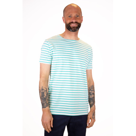 Conçu dans un coton biologique, ce t-shirt rayé homme se porte très facilement en toute décontraction et se collectionne dans toutes les couleurs Mousqueton. Vous apprécierez la douceur de sa matière très confortable et légère. Avec ses manches courtes, c'est le haut marin parfait pour la saison chaude !