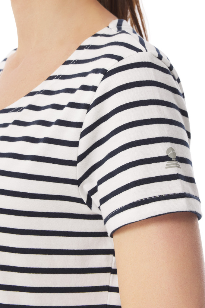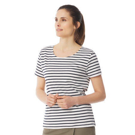 C'est le modèle incontournable des jours ensoleillés ! Simple et léger, ce t-shirt rayé femme est conçu dans un coton biologique. Vous n'aurez aucun mal à l'associer aux jupes et shorts de la collection grâce à ses couleurs pétillantes. Un t-shirt rayé à porter en toute occasion et à collectionner sans modération !