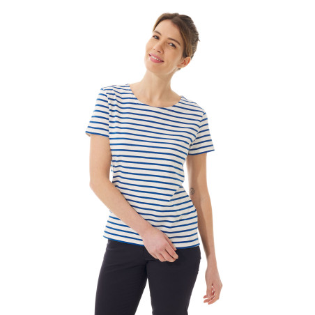 C'est le modèle incontournable des jours ensoleillés ! Simple et léger, ce t-shirt rayé femme est conçu dans un coton biologique. Vous n'aurez aucun mal à l'associer aux jupes et shorts de la collection grâce à ses couleurs pétillantes. Un t-shirt rayé à porter en toute occasion et à collectionner sans modération !