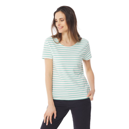 C'est le modèle incontournable des jours ensoleillés ! Simple et léger, ce t-shirt rayé femme est conçu dans un coton biologique. Vous n'aurez aucun mal à l'associer aux jupes et shorts de la collection grâce à ses couleurs pétillantes. Un t-shirt rayé à porter en toute occasion et à collectionner sans modération !