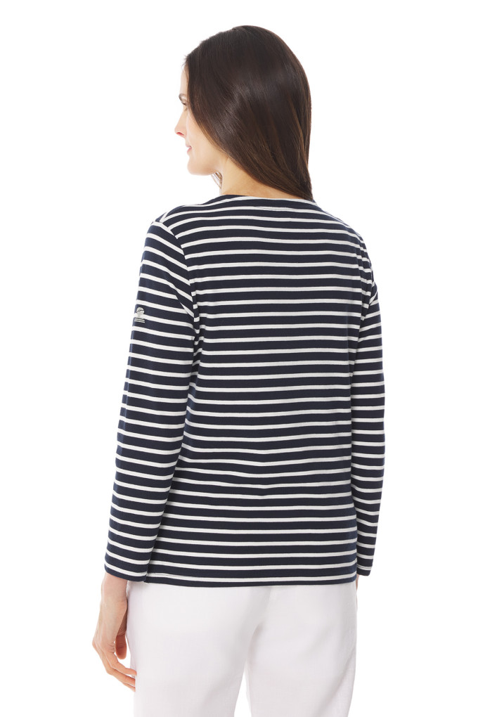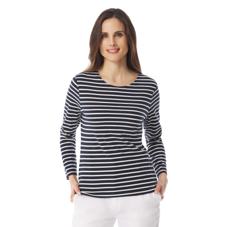 Affichez un look marin avec le t-shirt femme à manches longues ! Plus léger que la traditionnelle marinière, ce t-shirt rayé séduit par son encolure arrondie et sa coupe ajustée. Son coton bio léger vous enveloppe de douceur. Ses combinaisons de couleurs font de ce t-shirt manches longues un "must-have" de votre garde-robe.