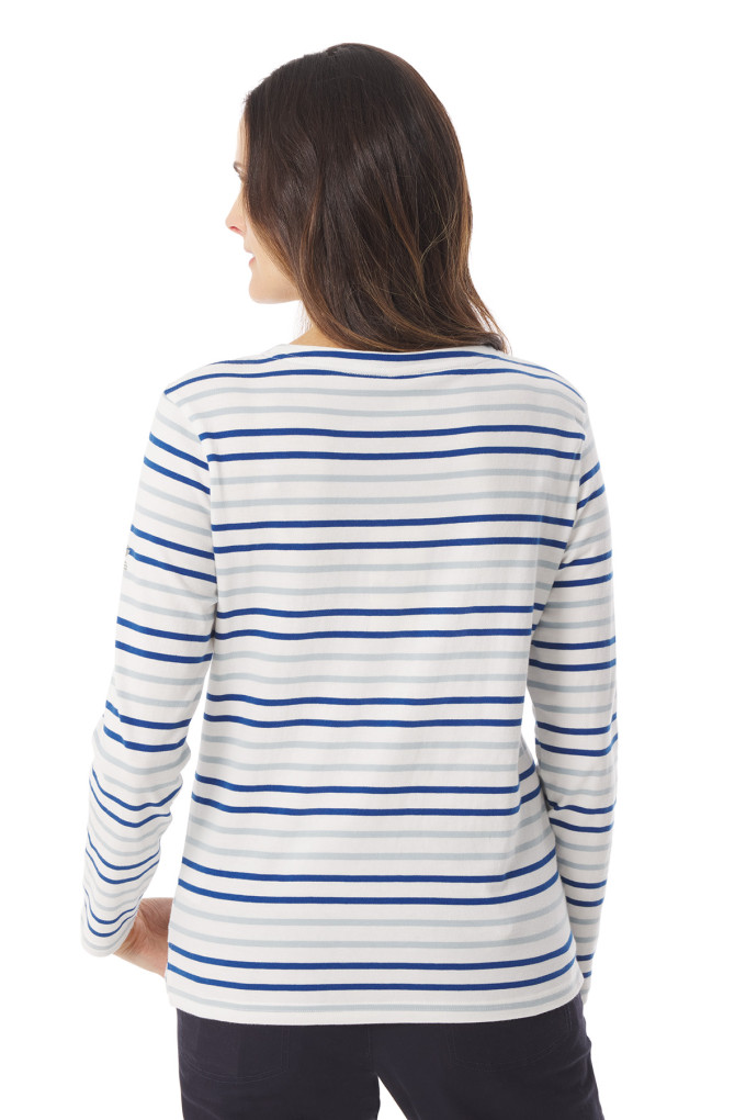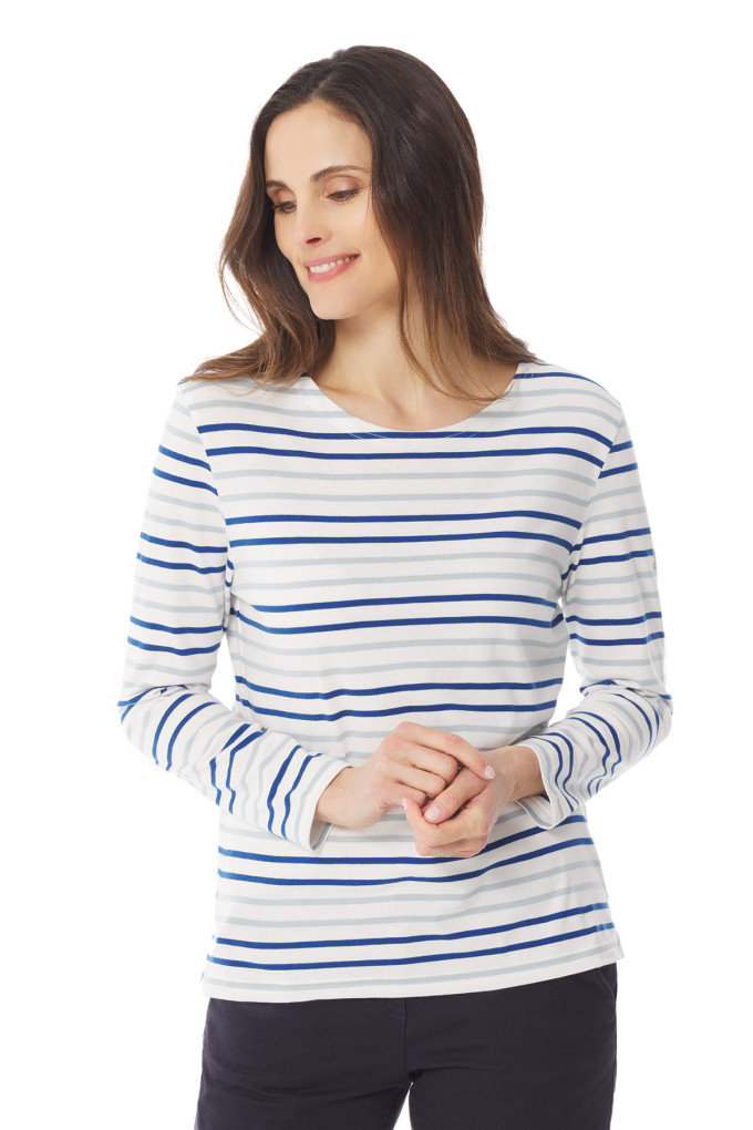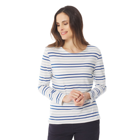Faites le plein d'énergie avec notre t-shirt femme à manches longues et ses rayures multicolores ! Tricoté en jersey de coton bio, il se veut doux et léger. Le petit plus de ce t-shirt, ce sont ses rayures qui mélangent teintes survitaminées et douces, à l'image d'une journée d'été. On apprécie son encolure arrondie, à mi-chemin entre col rond classique et encolure bateau de la marinière.