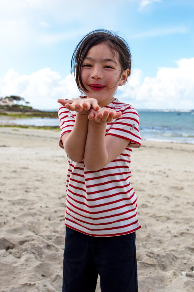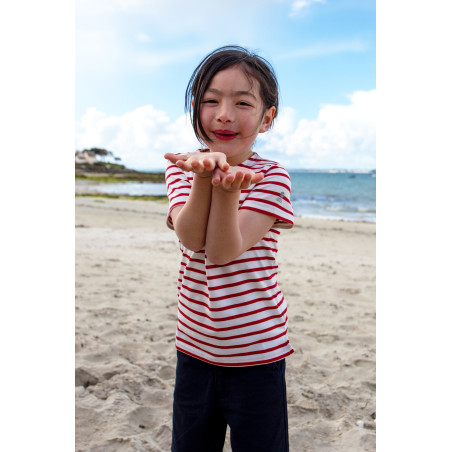 Voguez vers de jolis looks rayés avec ce t-shirt à manches courtes enfant ! Parfait pour l'été, ce t-shirt rayé se décline dans des coloris ensoleillés et survitaminés. Faites le choix du coton biologique avec cette création colorée à la fois confortable et légère.