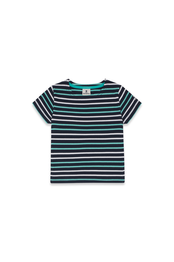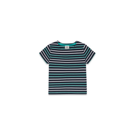 T-shirt rayé manches courtes enfant bleu marine et turquoise