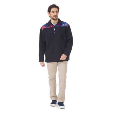 Apportez de la couleur à vos tenues grâce à cette vareuse à motifs ! Son empiècement épaule est décoré de motifs rappelant les fonds marins : algues, poissons et anémones s'entremêlent dans une explosion de vie et de couleurs.