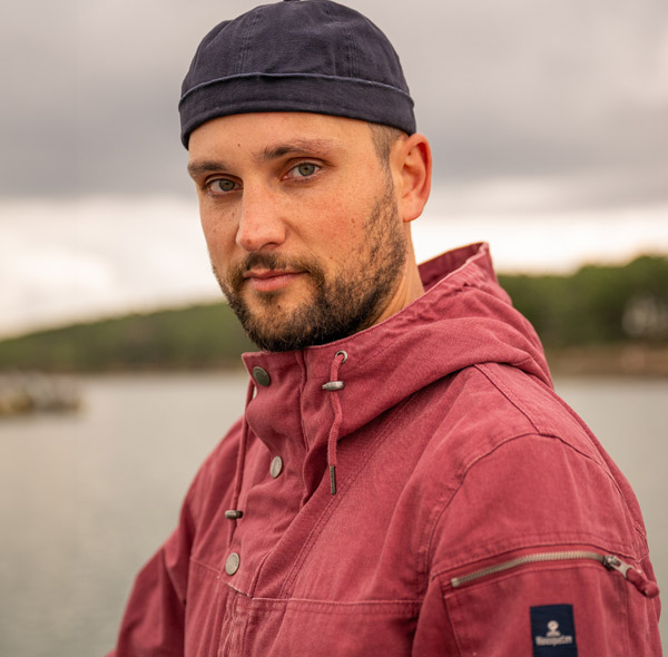Tissée dans une toile marine dense, la Baden oppose une vraie résistance aux bourrasques et aux petites bruines, tout en conservant une souplesse agréable. Un apprêt déperlant fait perler l’eau à la surface, tandis que la compacité du tissage crée une barrière légère sans l’inconfort d’un imperméable rigide. Sa doublure souple apporte du moelleux en mi-saison sans alourdir l’ensemble. En bref : une toile pensée pour durer, fidèle à l’esprit Mousqueton, prête pour l’air du large comme pour la ville.